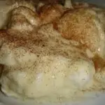 - Com um garfo pegue pequenas porções da clara em neve e coloque sobre o leite fervido sem mistura-las ou afundá-las.